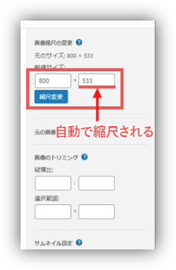 ・「横サイズ」が「縦サイズ」のいずれかの数字を変更すると自動で縮尺されます。